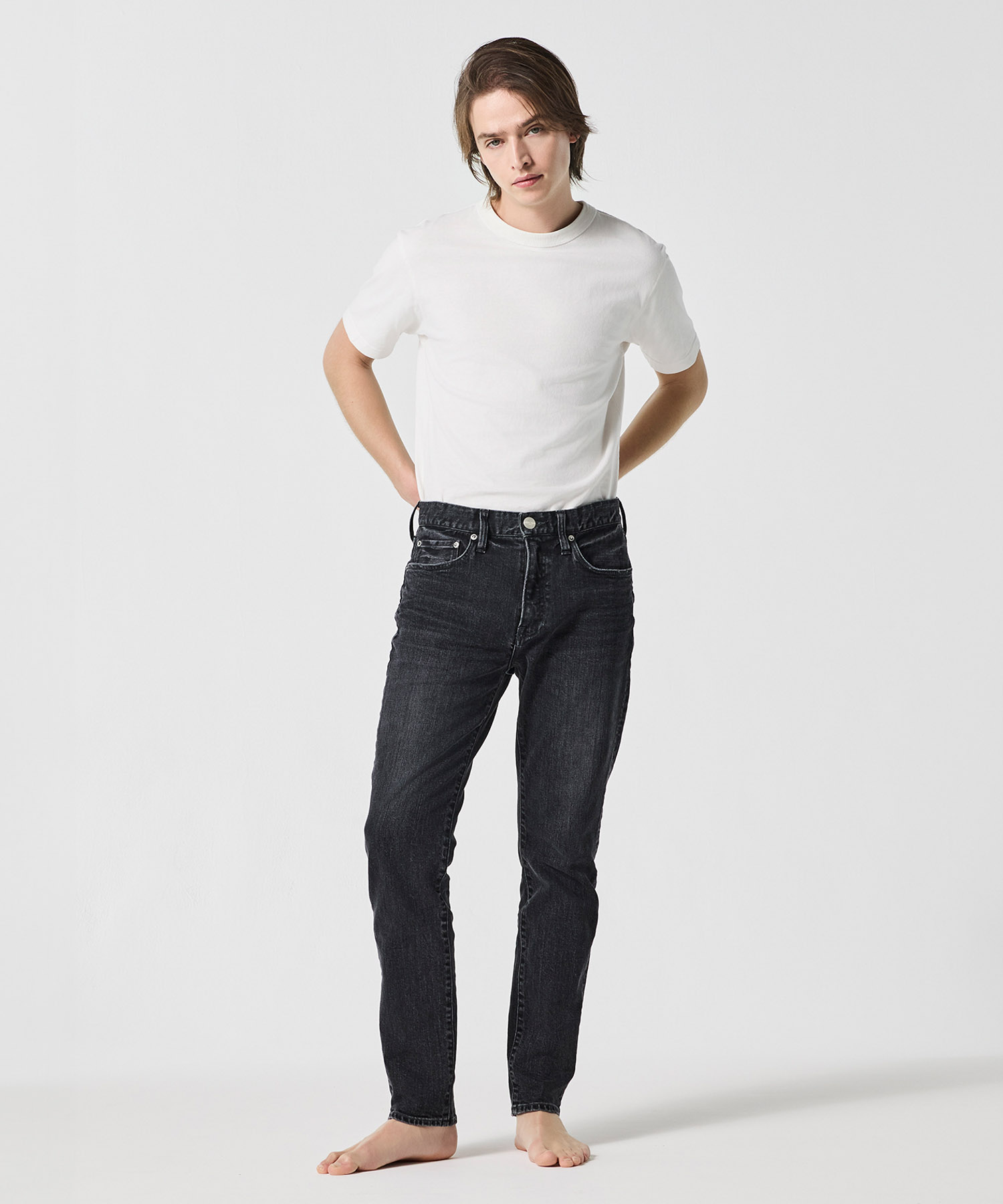 ウォッシュドブラックは、11oz程度のコットンストレッチデニムを使用。加工は西江デニムによるもので、本格的なヴィンテージライクな表情が特徴です。