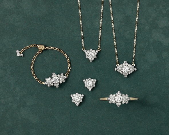 私たちにそっと寄り添う花の存在をジュエリーに表現したコレクション“fleurs”は、装飾品としての美しさはもちろんのこと、着ける方の心の支えとなり、日々に輝きと彩りを添えてくれるようにと、願いをこめてデザインされています。