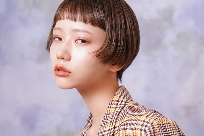 コンパクトなフォルムが魅力的なミニマムショート。丸みのあるシルエットが可愛らしさを演出しつつ、バングとサイドの髪を短く切り揃えてモード感のある雰囲気に。ヘアカラーはブラウンメイクやベージュコーデと相性抜群な赤みを抑えたベージュブラウンをチョイスいたしました。光に当たるとほんのり艶めいて季節感のある柔らかい印象に仕上がります。