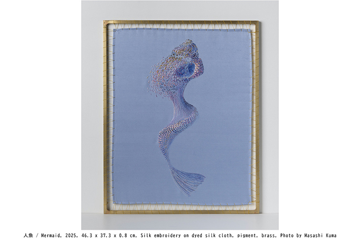 2001年、多摩美術大学彫刻学科卒業。彫刻的な造形感覚をもとに、刺繍を立体的、時間的な表現へ展開している。日本の染織文化や「祈り」としての手仕事を現代に継承し、糸が刻む時の痕跡を通して「見ること」と「触れること」の境界を探る。