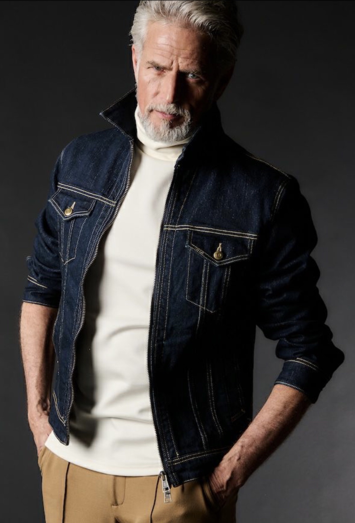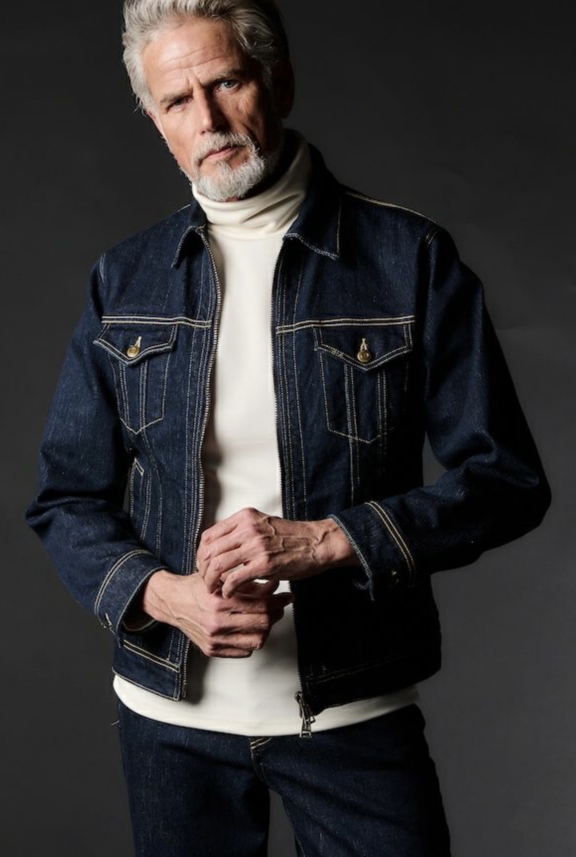 定番の「3RD型デニムジャケット」をベースに、フロントをボタンではなく逆開ZIP仕様にアレンジしております。