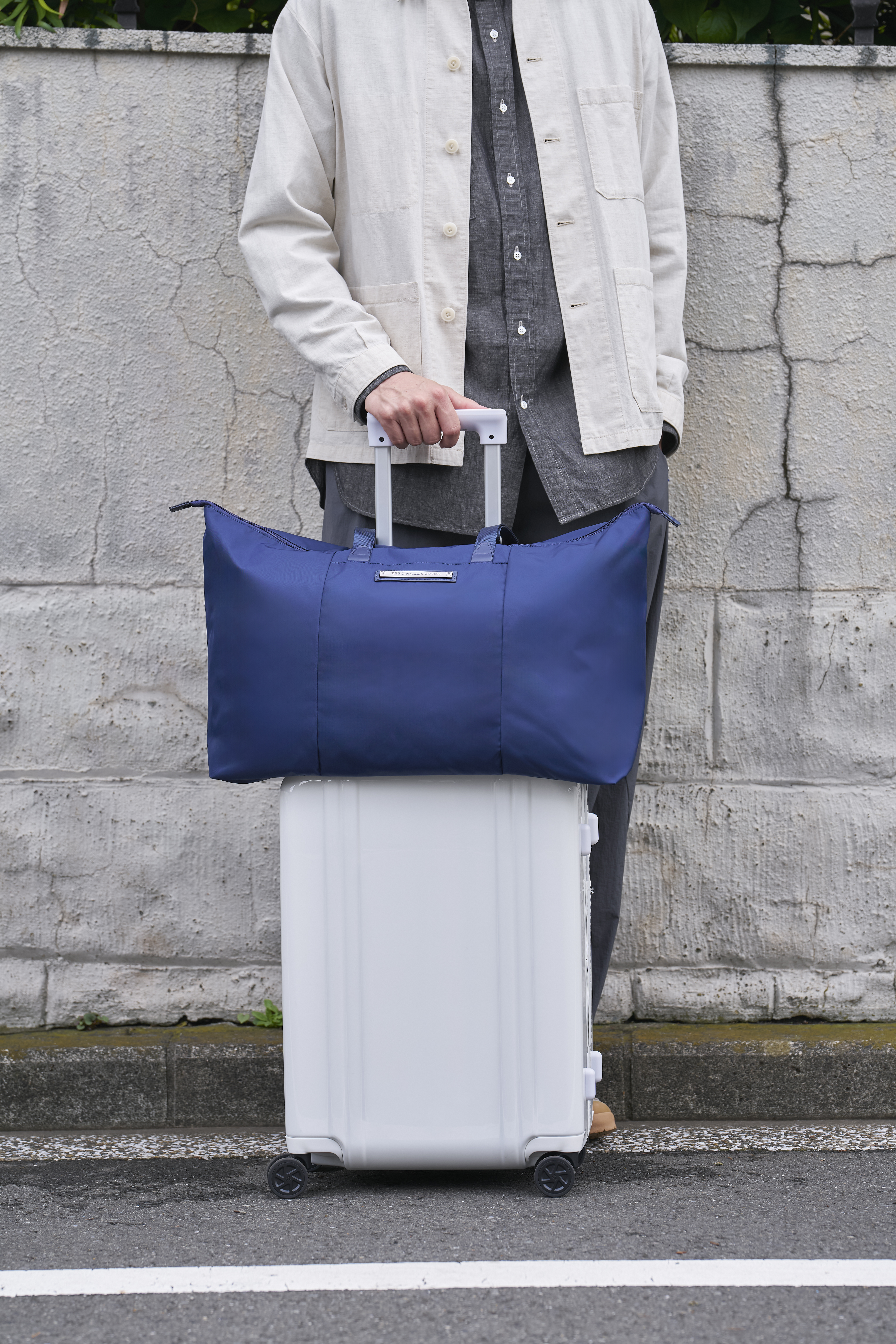 旅行時のサブバッグや予備のエコバッグとしても便利トートバッグ。バッグ本体は折りたたんで付属のポーチに収納可能。取り外し可能なナスカン付きレザーストラップを装備。手首に掛けやすく、持ち運びにも便利です。
