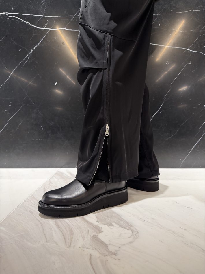 ミニマルで上品なデザインとなっており、余計な装飾を省き、素材(レザー)の質感やシルエットを活かしたシンプルで洗練された見た目となってます。上質な革を使っていて、履き込むほど足に馴染む素材で軽くて屈曲性があり、歩きやすいアウトソールを搭載してるモデルとなっております。